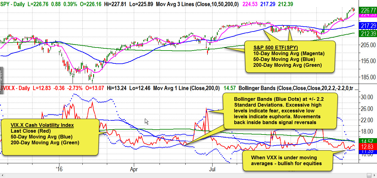 This chart of the VIX uses two indicators to identify when market sentiment is trending and when it has reached extreme levels. Here is how to read and interpret the chart: