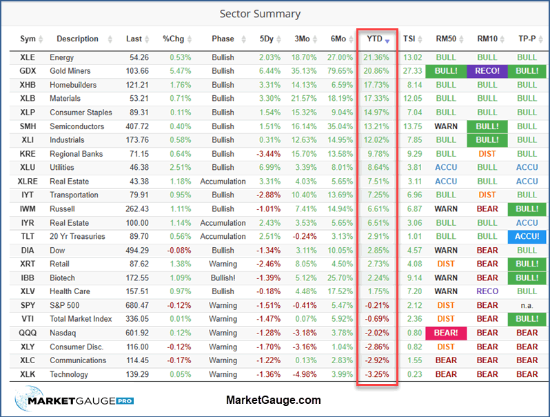 You can see the market’s strength in the table below (sorted by year-to-date performance) and available in Big View.