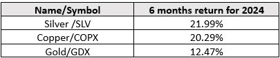 Not surprisingly, a few of the other Sector ETFs that were the big winners for the first six months were not company stock ETFS but included mining and material ETFs. Their performance put them right at the top of the list. I say not surprisingly because Mish has been discussing (and suggesting these) for the past 18 months. Additionally, our ETF model(s) have also taken advantage of metals and mining as part of their recent portfolio allocations.