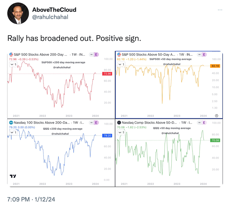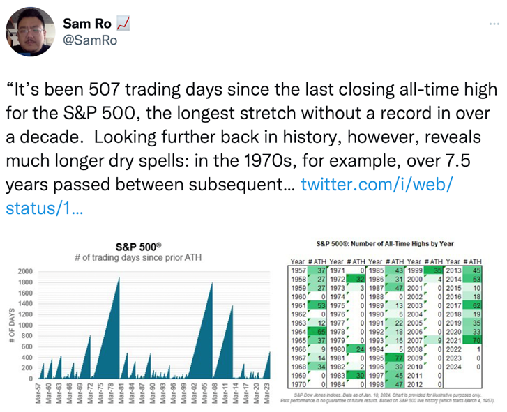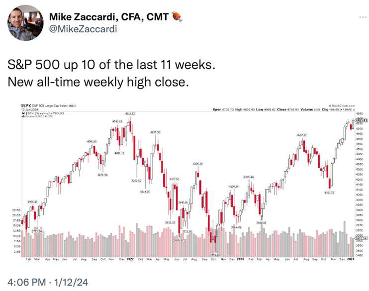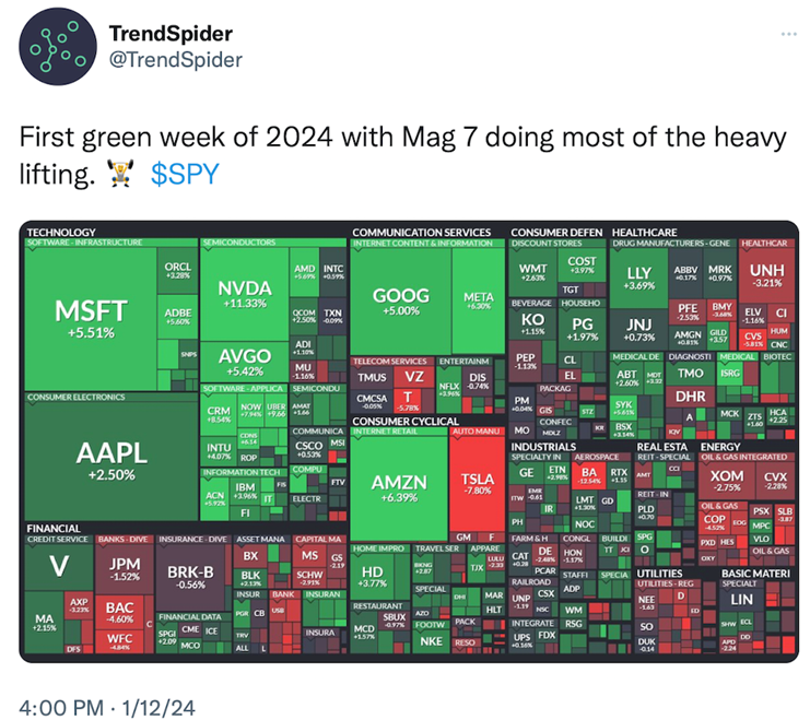 After a negative four day start to the New Year last week, the S&P started the week with a strong day out of the gate on Monday and the first full week of trading for 2024.