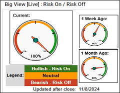 - Market internals that were looking marginal before the election are confirming the new all-time highs in the market, a bullish indication. Same for Nasdaq and S&P. (+)