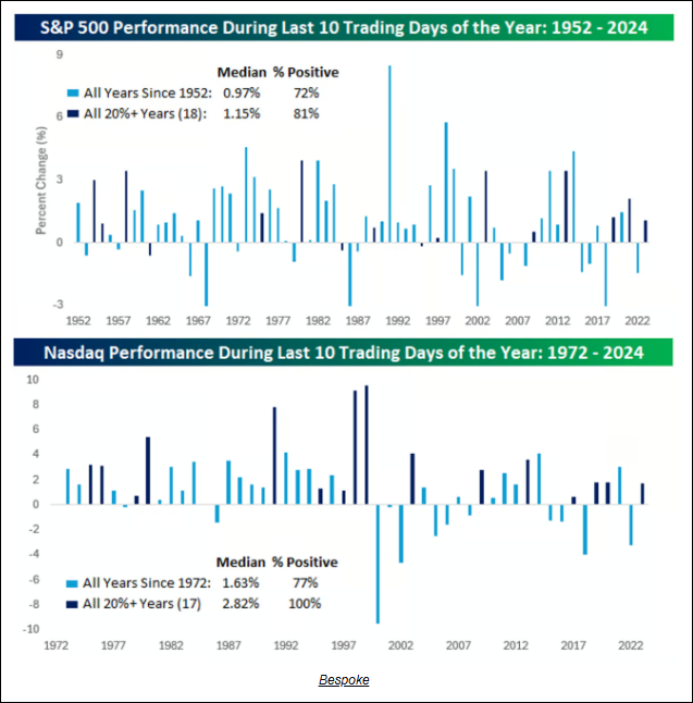 That said, as you can see from the chart below, history favors the last 10 days of December, and even more so when there is momentum like we’ve had this year.