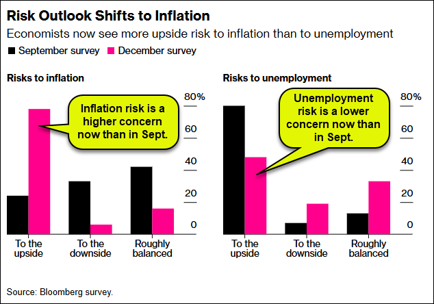 As you can see in the charts below from a Bloomberg survey done prior to the Fed meeting, one of the biggest concerns amongst economists was the very catalyst that led to the implosion – Inflation.