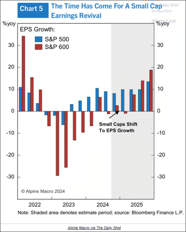 The value of earnings growth is demonstrated by the chart below with a focus on the area of the market that is likely to be a very hot topic in 2025 – Small Caps.