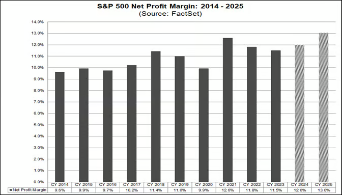 Factset is also estimating that S&P 500 margins will expand in 2025 to a level not seen since 2008.