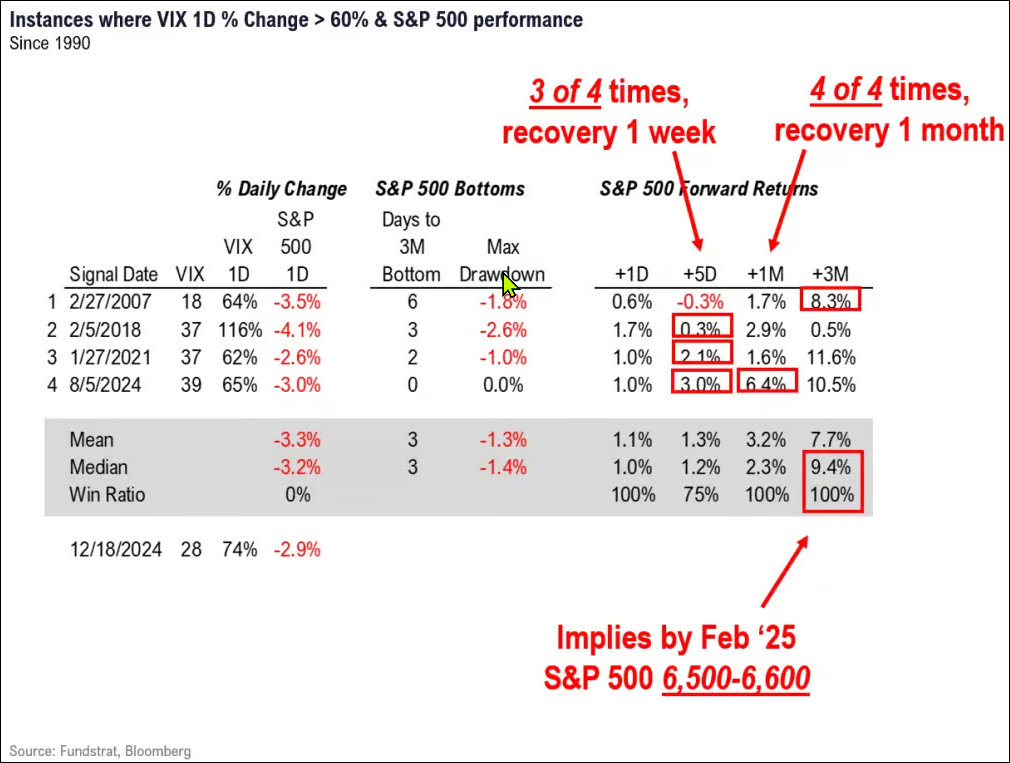 In this case, as noted above and outlined in the table below, the ‘panic’ as measured by the VIX was historically high and, as a result, set up a condition that was susceptible to a bullish reversal.