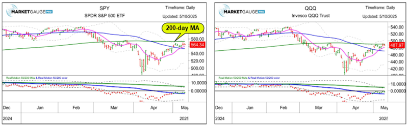 Summary: Markets took a pause around their major moving averages as they digest the longer-term impact of the tariff policies. Market internals continued to improve from the volatile April price action, though losing some momentum from its strong bounce off the lows.