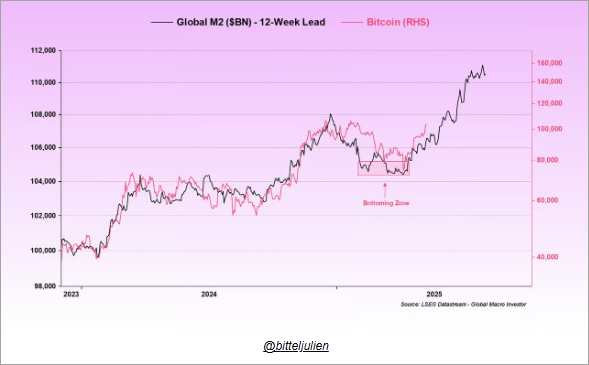 Finally, there is an interesting relationship demonstrated by the chart below, which not only supports why Bitcoin might continue its current rally, but also lends quantitative credibility to how it may at times serve as a hedge against inflation. Money supply growth is often cited as a source of future inflationary pressure.