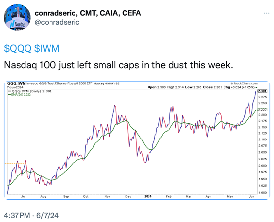 Are you getting ready to load up on small-cap stocks?  (just a reminder that our Small & Midcap Earnings Growth Investment strategy generated a better than 50% return in 2023 while interest rates remained high… (talk to Rob@MarketGauge.com about this strategy if you are interested).