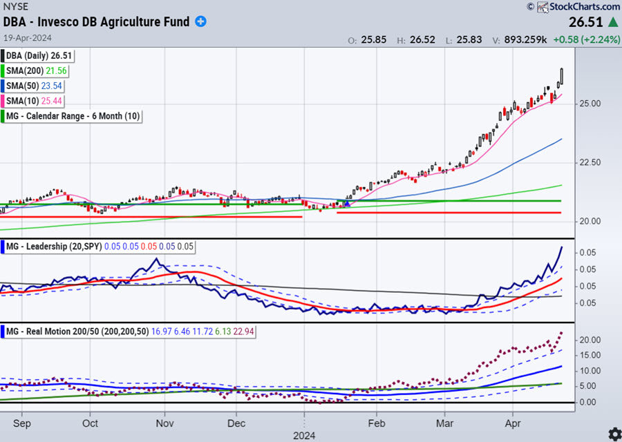Additionally, soft commodities have also moved up sharply (food prices are exploding), driving inflation up and wreaking havoc on the markets’ expectations of lower rates. Our GEMS trading model has capitalized on these shifts and is outperforming all key benchmarks, moving out of equities into GLD, Silver, DBA, and exiting Semis.