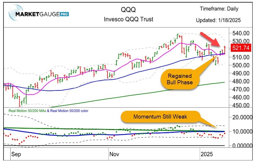 The U.S stock market experienced a robust performance in the week ending January 17, 2025, marking its best week since President Trump’s election victory. The S&P 500 rose by 2.9%, Poppa Dow Jones Industrial Average gained 3.7% and the Nasdaq Composite increased by 2.5% over the past 5 trading days. The Russell 2000 Index, representing small-cap stocks, experienced a notable rise of 4% over the past 5 days, closing at 2,275.88. The Nasdaq 100 continues to dominate, although momentum is still weak.