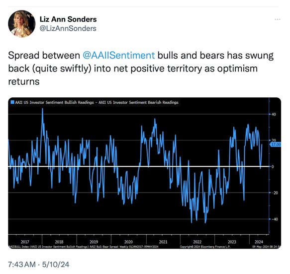 With 80% of S&P 500 companies reporting results, the index is on track for a healthy 5% growth in earnings per share for the 1st Quarter of 2024. This exceeds analyst’s expectations for earlier forecasts of 3.2% growth, marking the biggest year-over-year increase since mid-2022.