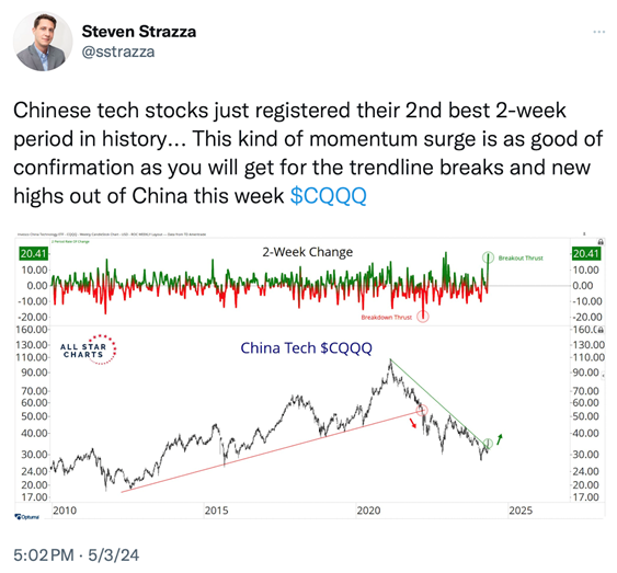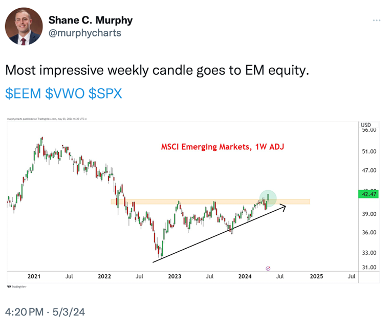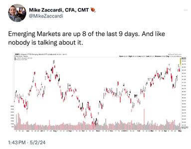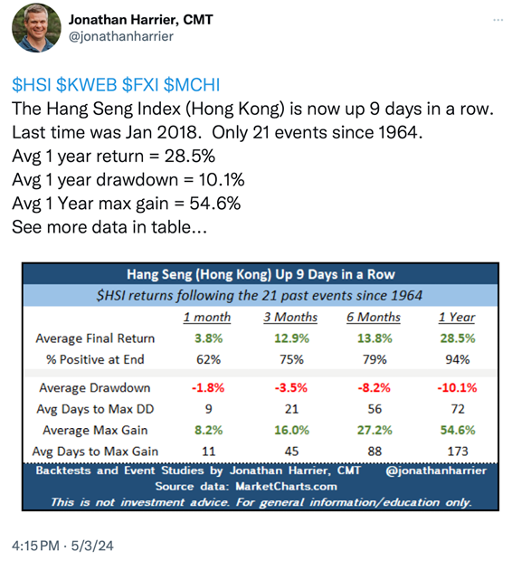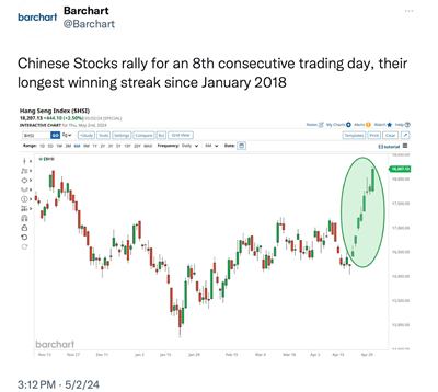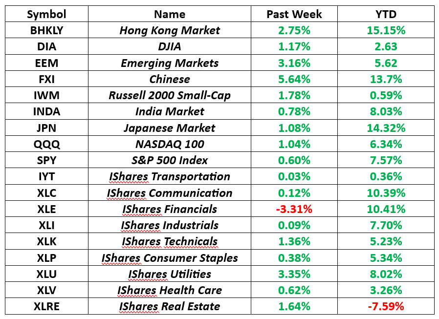 I wanted to share the above with you because I thought that you might be shocked to see who the big winners were last week and the period since the start of 2024. Asian stocks, specifically China, Japan and Hong Kong stocks have had a long overdue rally that has surprised many investors.