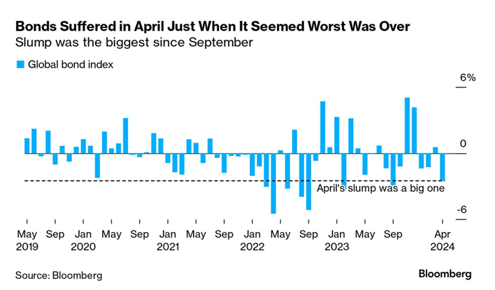 Given this rate rise over the past few months, April was very hard on fixed income investors. See graph below: