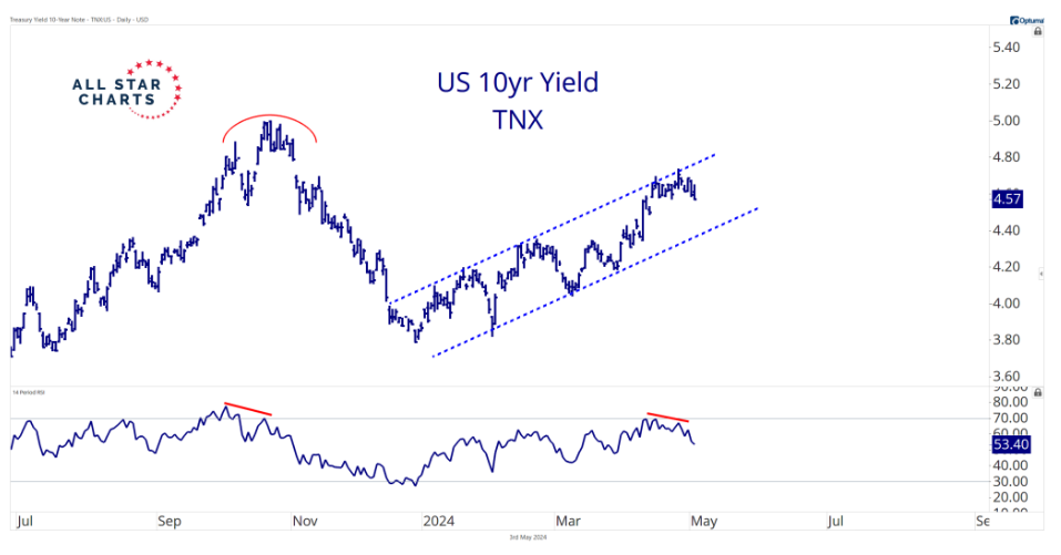 With interest rates staying higher for longer (something both Mish and I have repeated for the past 6 months), the Real Estate sector is continuing to lose ground as lofty valuations from a low interest rate environment are being repriced.