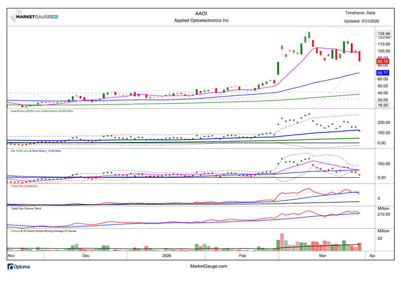 If it climbs back over its 10 DMA and the $100 level that has been pivotal, the price action will suggest it’s ready to move higher. If that happens with bullish reading in leadership, volume, and Real Motion, it will have all the ingredients of an explosive growth stock.
