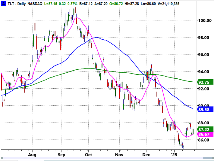 After a relentless decline in the TLT starting in early December, the TLT rallied from a few days prior to the inauguration through Tuesday the 21st and then settled down over the remainder of the week.
