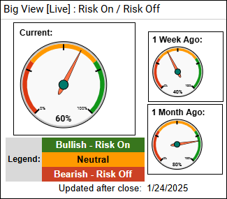 - Risk gauges improved to a strong neutral with both XLU/Utilities and equities in positive phases. (=)