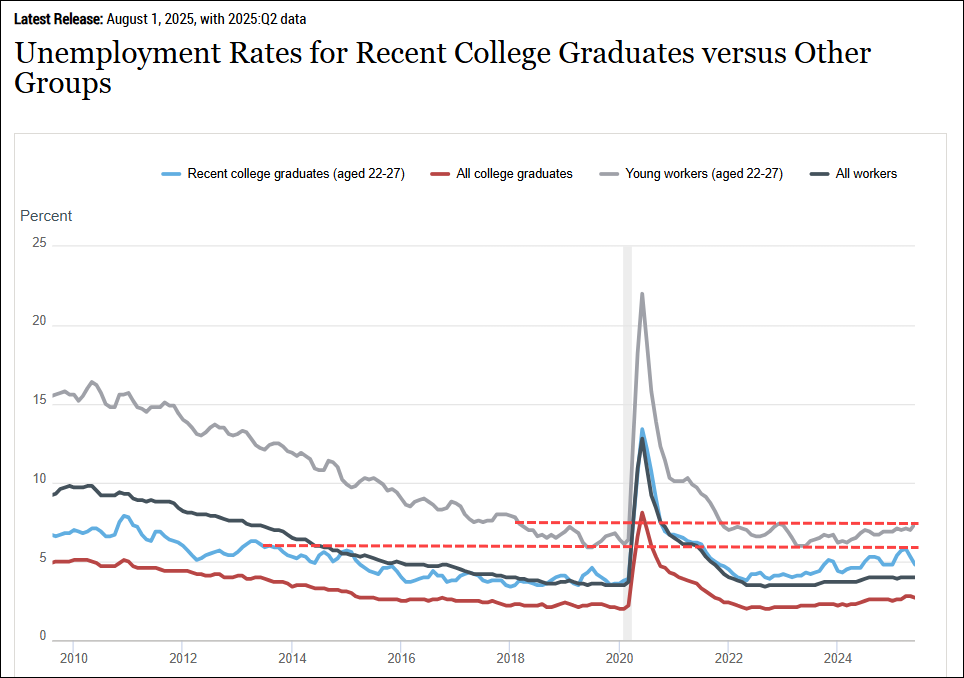 It’s not only hard to find a job when you lose one. As you can see from the data below it’s difficult to find a job if your young and or recently graduated.