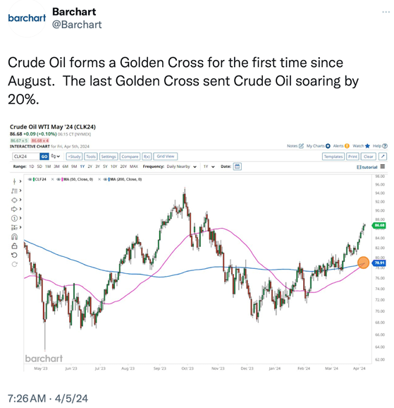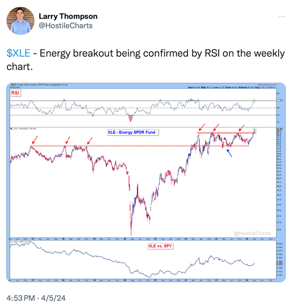 – - Oil and oil related stocks are big movers in 2024. We would be remiss if we did not include energy in this conversation. In fact, most analysts list energy related stocks among the best values in the market. We believe investors are starting to wake up to this reality. We follow this with several charts about energy stocks and oil: