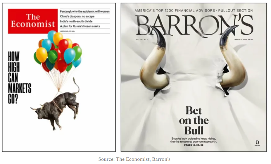 – - The Magazine Cover phenomena. In my days of running around the US and giving institutional and retail advisor presentations, we used to have a slide that showed magazine covers throughout several market cycles.