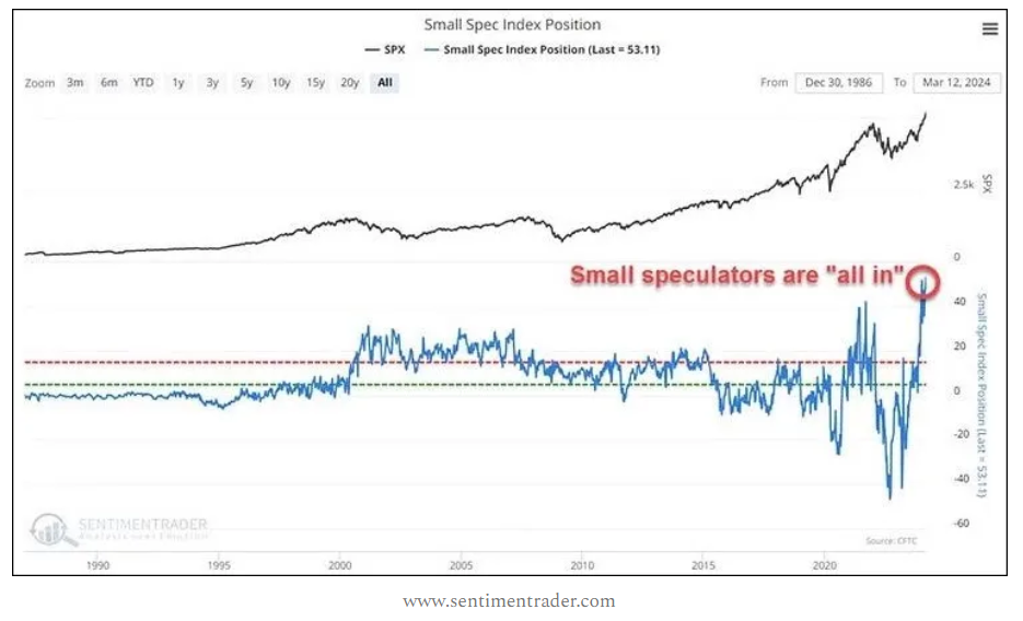 – - Small speculators are “all-in”. This chart is probably the one that speaks the most about the speculative nature of the current market conditions.