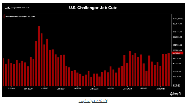Additionally, the integration of AI into corporations’ labor forces is expected to increase productivity. This may eventually allow companies to do more with fewer people. See job cut chart below: