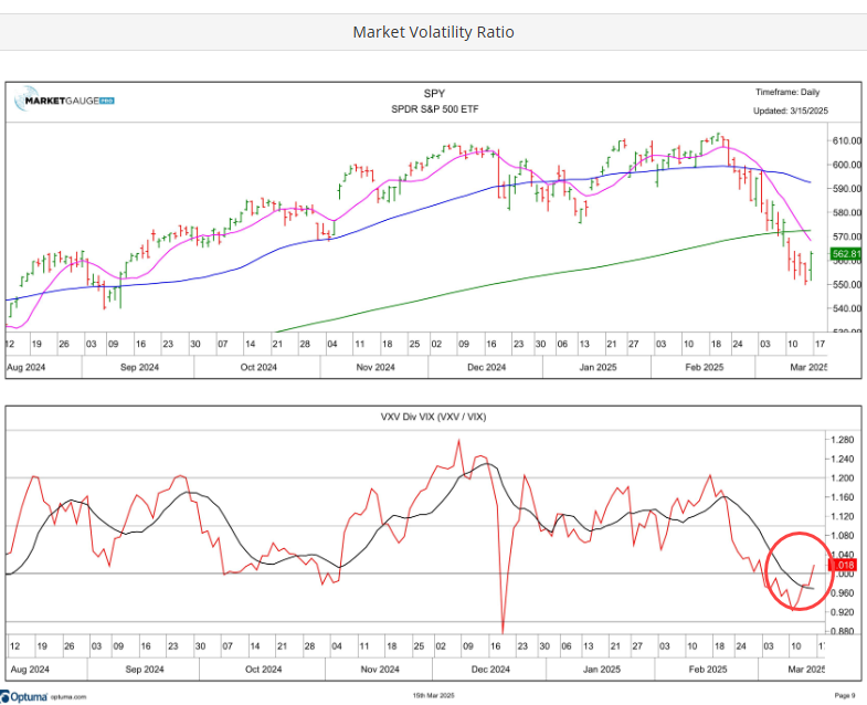 - As we noted last week, Volatility measurements hit overbought levels and is in the process of mean reverting from key resistance levels in both the cash and futures-based ETF. (=)