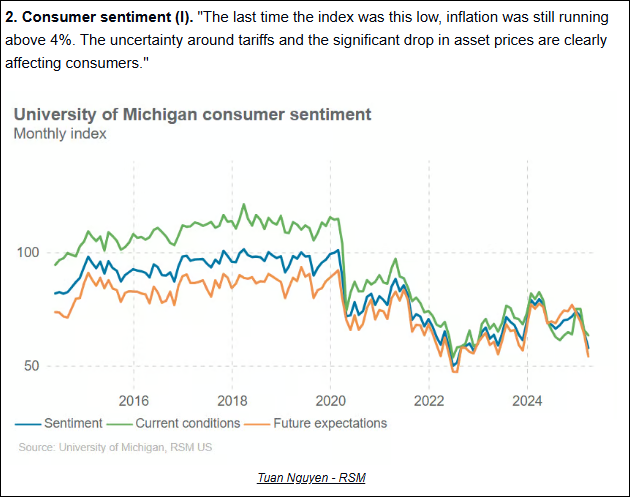 This week: Tariffs and DOGE actions drive consumer angst and uncertainty to historically high levels. The market continues to decline, led by consumer-related sectors. Goldman Sachs, Citi and other analysts announce cuts in their forecast for growth and the market.
