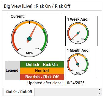 - The risk gauges improved with the relative weakness in Gold and Utilities to a strong neutral reading.. (=)