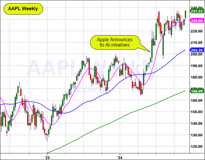 Considering this, it’s fitting that AAPL should choose Black Friday to break out of its 5-month consolidation that has followed its announcement of its AI initiatives. See the chart below.