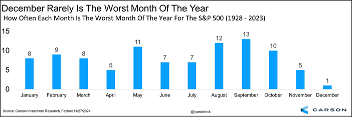 Ryan Detrick at Carson points out that the worst-performing month this year was April, with a loss of 4%.