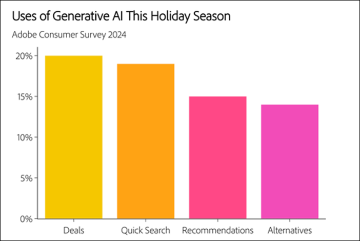 Surveys by Whoop.com and 40% of shoppers will turn to generative AI tools this Black Friday and holiday shopping season to find deals, search for items, get recommendations, and find alternatives.