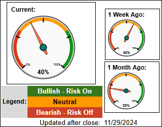 • Risk gauges are a weak-neutral due to the relative strength of the long-bond (TLT) outperforming the S&P. (=)