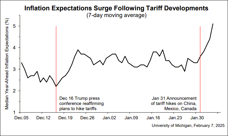 While there is some debate over the extent to which tariffs will impact the inflation data. It’s hard to argue against the belief that tariff announcements will increase inflation expectations.