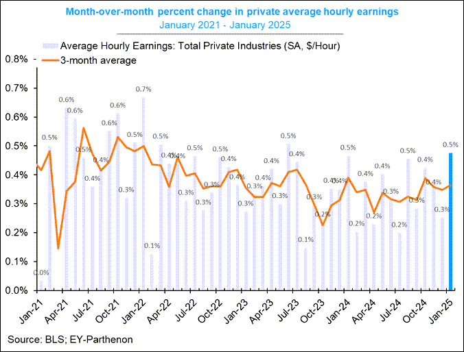 While this higher than expected, inflation sensitive, number made for good media attention, you can see in the chart below that the data is volatile. Additionally, Goldman Sach’s chief economist Jan Hatzius, who has been vocal about wage inflation, commented that he was not concerned or focused on this number because it needs to be considered along with other factors like average hours worked, which fell, and seasonal distortions that tend to revert after January.