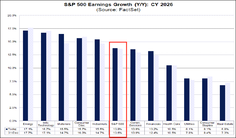 When we look to the same earnings perspective for 2026 (shown below) there are some additionally noteworthy trends.
