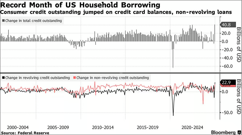 The data below highlighting the huge jump in consumer debt wasn’t a market mover this week, and it’s not the focus of this week’s Market Outlook. However, I suspect the markets will be focusing on this sooner rather than later if the trend continues.