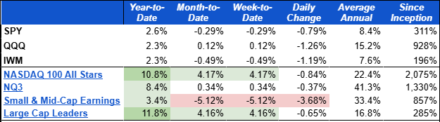 Earnings season is often rewarding for our trading systems and this season has been a good example. All of our stock focused models (shown below) are outperforming and most by a wide margin.