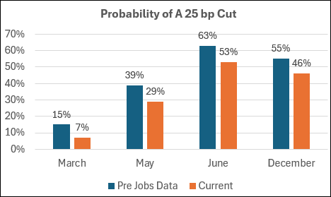 With a strong, reassuring employment report and higher inflation expectations, there will naturally be pressure on the Fed to further delay cutting the Fed Funds Rate.